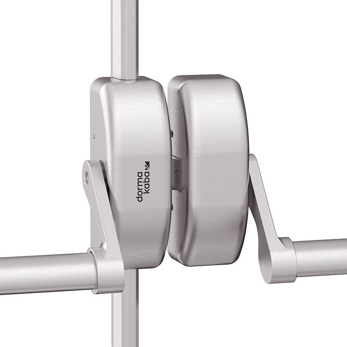Con la barra antipánico de la serie PHA 1000, barra de empuje, y la barra antipánico de la serie PHB 1000, barra tipo push, combinadas con los herrajes exteriores universales PHT, dormakaba puede ofrecer una gama adecuada no sólo para puertas perfiladas, sino también para puertas de madera y metal. El cerrojo de seguridad ancho encaja en un cierre que normalmente se monta en el marco. De este modo, el pestillo es muy fácil de instalar y la puerta queda bien cerrada.